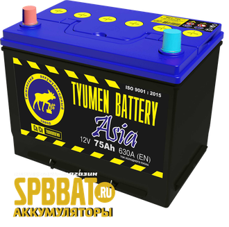 Аккумулятор Тюмень Азия 75Ач ток 630А (TYUMEN BATTERY Asia) 6СТ-75L (Ca/Ca) П/П (266х173х220) прямая полярность + -