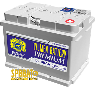 Аккумулятор Тюмень Премиум 60 Ач ток 540А (TYUMEN BATTERY Premium) 6СТ-60L О/П (низкий) (242x175x175) обратная полярность - +