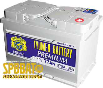 Аккумулятор Тюмень Премиум 77 Ач ток 670А (TYUMEN BATTERY Premium) 6СТ-77LR (Ca/Ca) О/П (278х175х190) обратная полярность - +