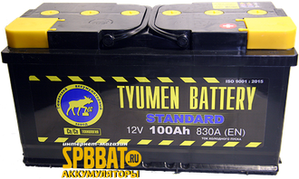 Аккумулятор Тюмень Стандарт 100 Ач ток 830А (TYUMEN BATTERY Standard) 6СТ-100LR (Ca/Ca) О/П (352x175x190) обратная полярность - +